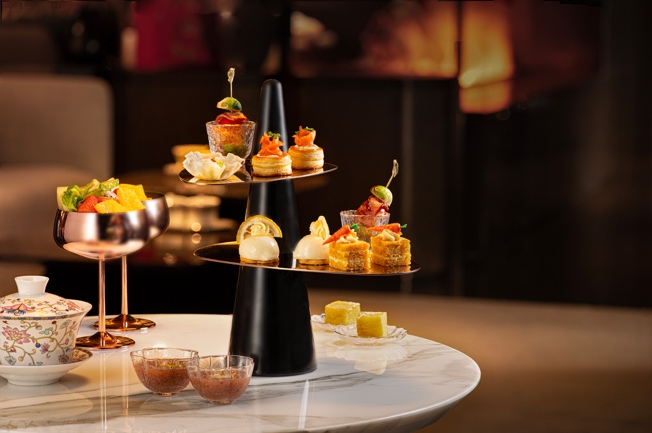 本季呈献的「秋邑粤味」双人下午茶,以广式茶点为灵感,延续“酥、香、柔、清”的主调,点心层架次第铺开:孢子甘蓝小汉堡、迷你西多士、鱼子酱小泡芙、凯撒小船、柠檬蛋糕与胡萝卜蛋糕、丸子红豆沙,配以港式奶茶与时令水果,甜与咸彼此映衬、轻盈不腻。