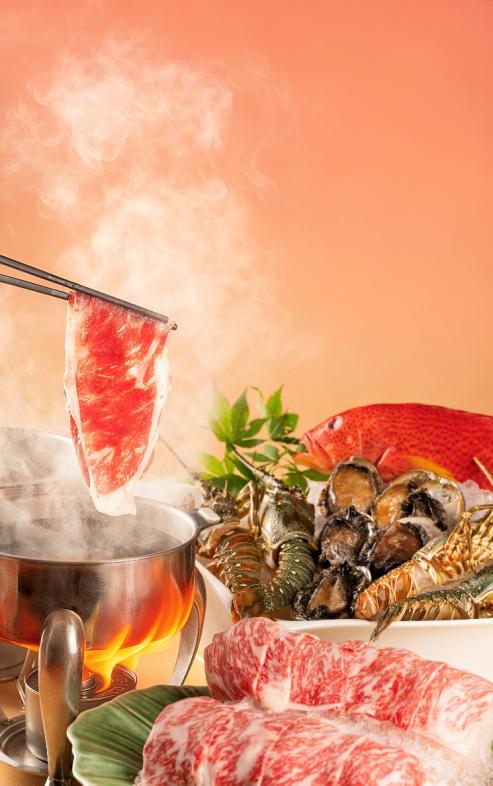 氤氲锅气,食材盛宴。都会尚膳餐厅心意臻呈两款暖心锅底,五指毛桃锅清润香浓,汤底食材的营养充分融入汤中,是养生滋补的自然之味;日式寿喜锅以独特的调味组合赋予了锅底醇厚且层次分明的口感,各类海鲜菌菇在锅中炖煮,清甜鲜美。食客们可随心搭配海陆至尊拼盘(肉质弹嫩的小青龙,鲜活肥美的鲍鱼,细嫩如云的东星斑鱼片,精选和牛、新鲜菌菇时蔬)等多种琳琅食材,于锅中热浪轻涮,在氤氲蒸汽中尽享港式打边炉的本真精髓。