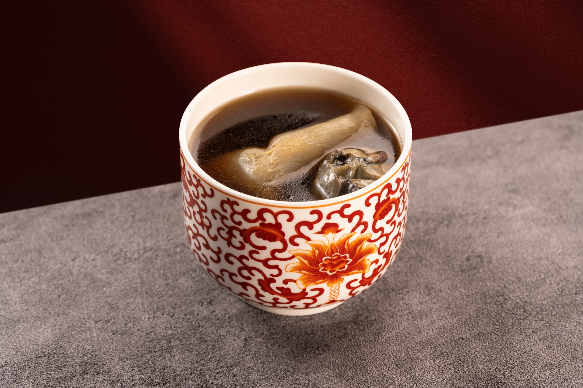 乌鸡汤味清甜,花胶与黑枸杞相佐,汤色清澈透亮,滋补温润。黑枸杞的独特香气与乌鸡的浓郁风味完美融合,寒冬时节的养生温润臻品。