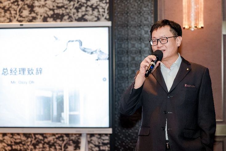 晚宴在酒店总经理胡子瑜先生的热情致辞中拉开序幕。胡总首先向所有莅临现场的嘉宾表达了由衷地感谢,回顾了酒店从初创时的砥砺前行,到如今携手共度的美好时光,每一步都凝聚着宾客与媒体朋友们的陪伴与鼓励。胡总特别提到,正是因为大家的信任与支持,酒店才能不断成长、创新,持续为宾客带来更高品质的服务和独具匠心的餐饮体验。