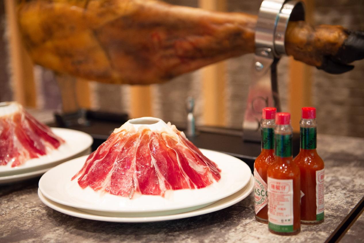 烤乳猪、碳烤牛肋排、现切西班牙火腿、甜品和芝士拼盘任您畅享