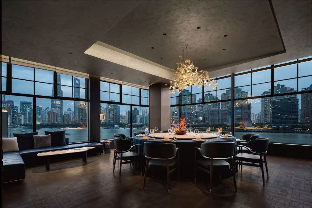 熙唐宴立足外滩核心区位,坐落在老码头2号仓库5楼,坐拥黄浦江270°视野,以唐风宋韵为内核,融合水墨色调、枯山水造景与全息投影,打造沉浸式东方美学空间,兼顾仪式感与出片需求。“熙唐”之名暗藏底蕴,将东方文化与饮食体验深度绑定,让食客收获味觉与心境的双重满足。