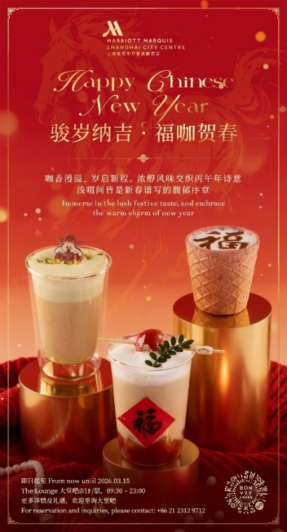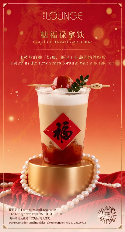 酒店大堂吧臻献丙午马年新春限定咖啡,以醇厚滋味福启鎏金新岁。在恪守经典咖啡底蕴之余,融以新派调饮巧思,用浓醇风味唤醒舌尖欢愉。邀宾客们轻啜慢享,于摩登都市间漫品佳节雅韵,共叙团聚温情。
