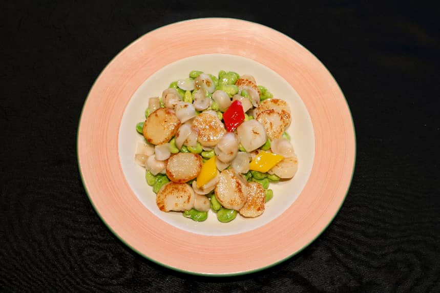 春蚕百合煎澳带Pan fried Fresh Scallop with Broad Bean