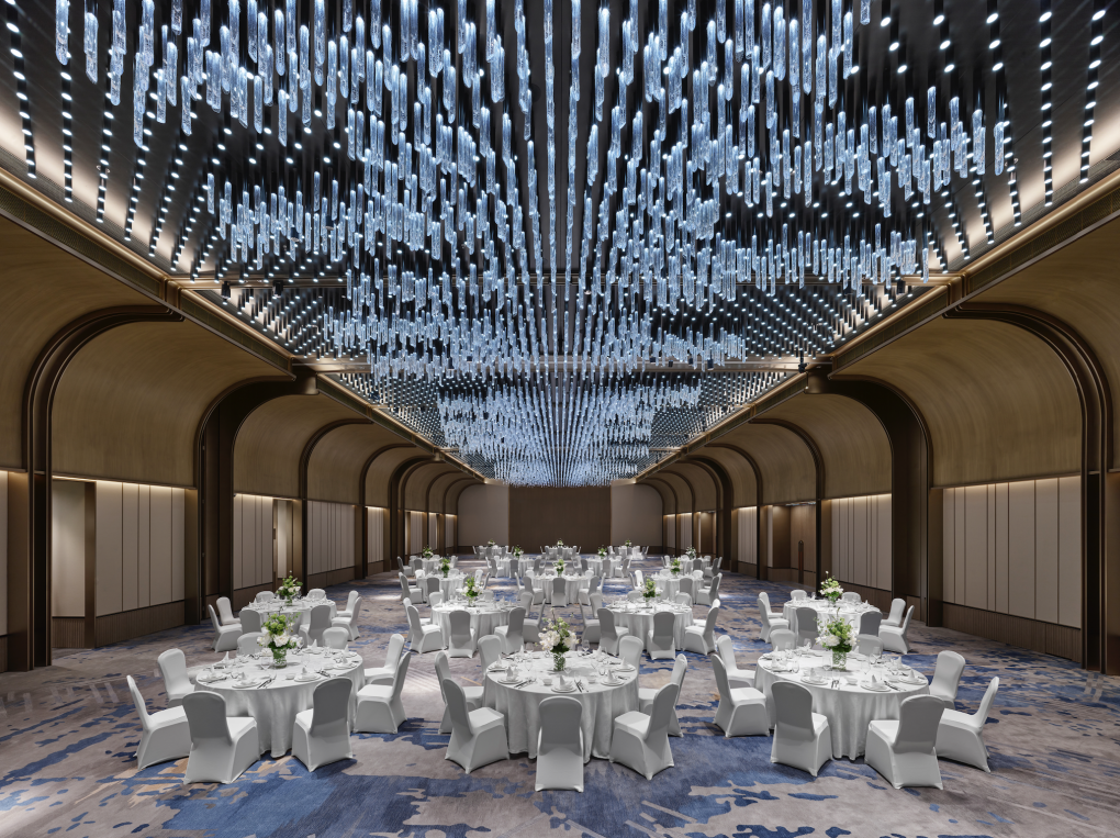 酒店 900平方米挑高无柱大宴会厅,恢弘大气,气度从容。水晶灯如星河流转,光影落于杯盏之间,天地为证,岁月为鉴,许君一世长欢。典雅前厅与落地幕墙相映生辉,视野开阔无阻。无论是中式婚礼的庄重,亦或是西式婚礼的浪漫,都能在此优雅呈现,让每一场婚礼都成为独一无二的动人篇章。