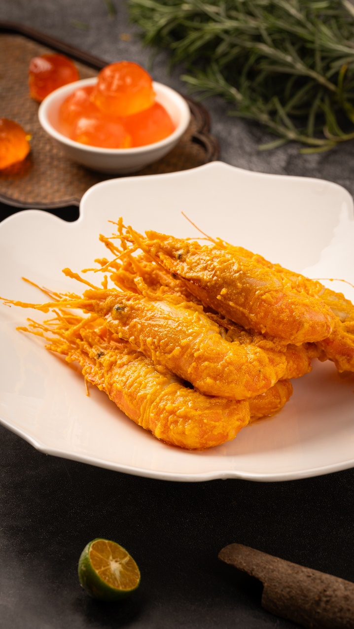 三种风味罗氏虾焕动鲜虾味蕾绮遇。甜辣紫苏罗氏虾中的辛香与紫苏清香交织,层次丰富;黄油黑胡椒罗氏虾则奶香馥郁、椒香提鲜,醇厚回甘;咸蛋黄罗氏虾选用金沙裹身、咸香酥脆,唇齿留香;更有蟹肉鲜甜、软糯吸汁的台州家烧青蟹年糕,尽显浙东渔家风味。层层饱满的虾肉佐以匠心料汁,为宾客构筑酣畅淋漓的味蕾体验。