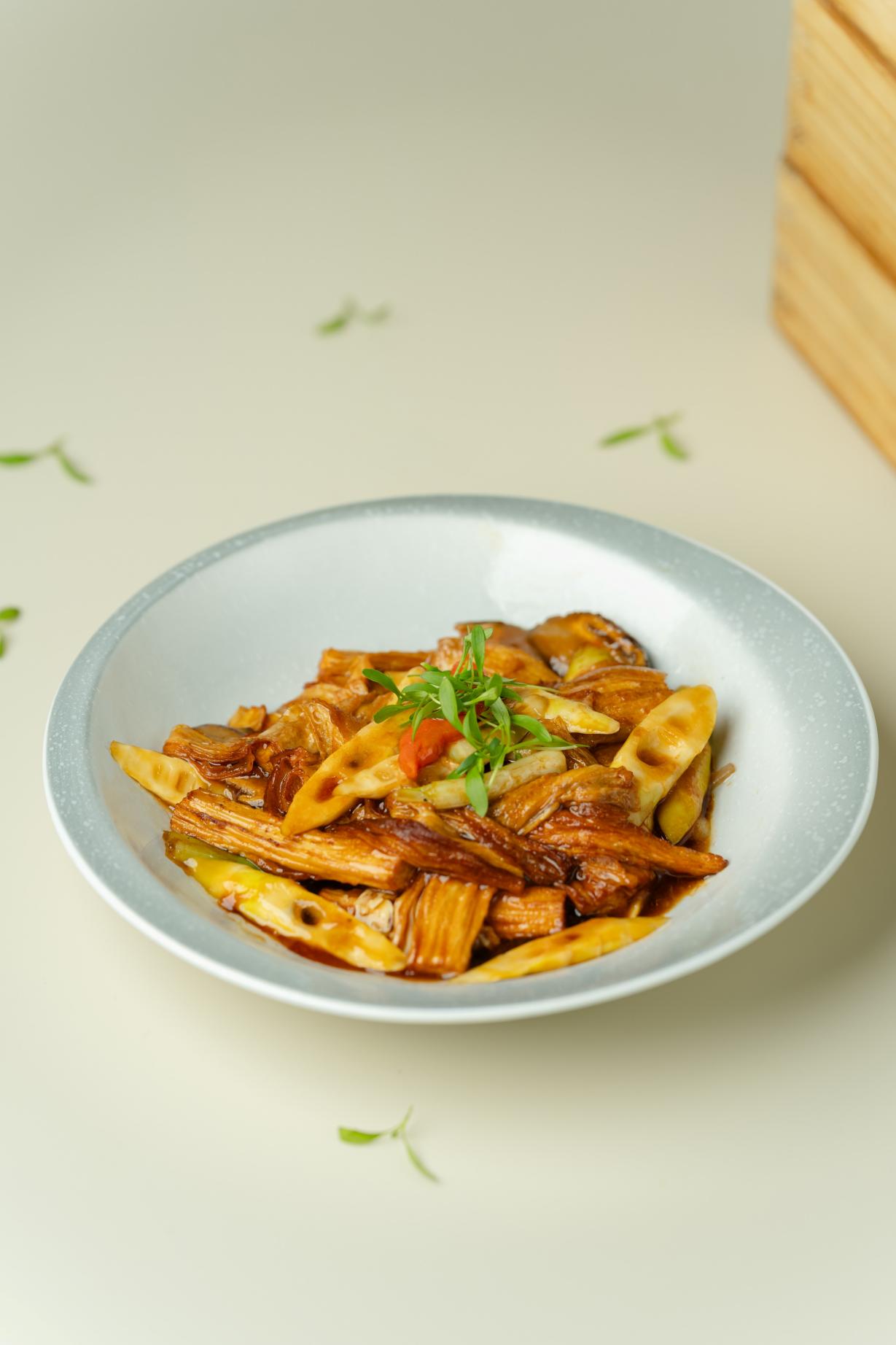 热菜篇章焕新升级,将春日鲜材与广式风味深度融合,兼顾地道口感与时令特色。「肉末炒豆角」家常中见火候功力,咸香入味;「竹笋腐竹煲」以春笋的鲜与腐竹的柔相得益彰,层次分明。