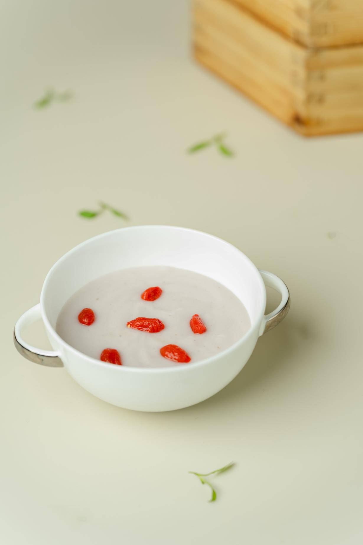 甜品部分以柔和细腻收尾。「椰汁香芋露」香滑绵密,椰香与芋香交织;「手工红糖冰粉」清凉爽口,点缀春日轻盈气息,为整场味觉体验留下恰到好处的温柔回甘。