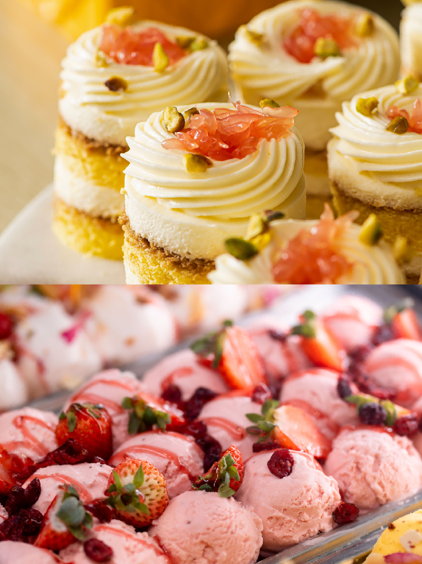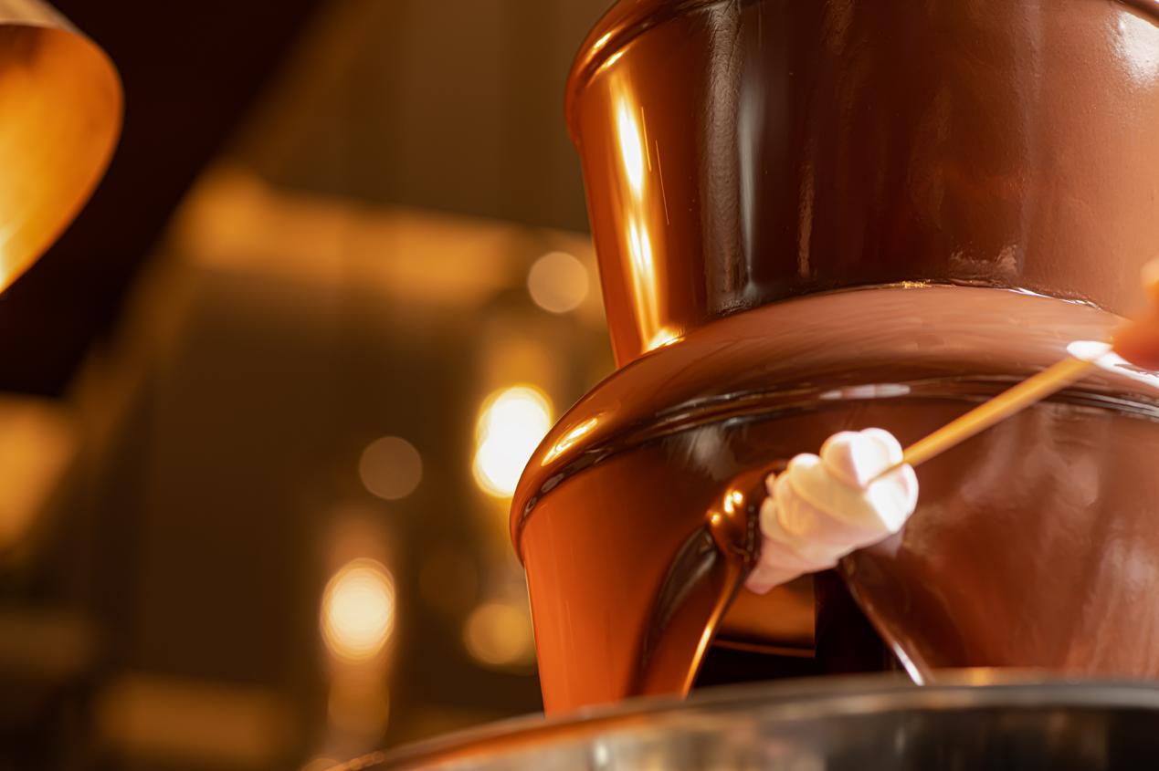 甜品区域将甜蜜与童趣完美融合,是家庭聚会的打卡热点。大厨现场制作的手作舒芙蕾松软香甜,6层巧克力喷泉搭配棉花糖,瞬间化身为亲子互动的欢乐角。本季特别派送的小龙虾覆盆子棒冰更是席间的视觉焦点,其有趣的外形与酸甜清爽的口感备受青睐,为餐桌增添了别致的拍照打卡乐趣。丰富甜品均坚持采用纯动物奶油制作,低糖且不添加人工色素,招牌开心果蛋糕、香草意式奶冻与蓝莓芝士蛋糕等选择,口感绵密轻盈,为整场晚宴画上圆满句点。