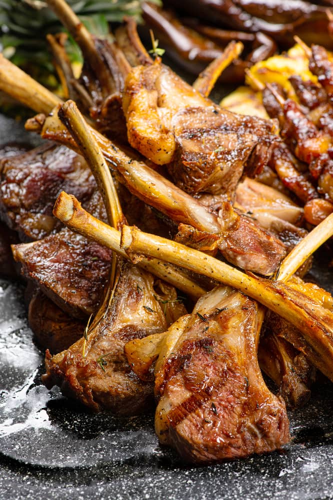 除了令人畅快的“嗦虾”体验,鲜艳餐厅特别保留了极具仪式感的堂做派送服务。伴随着诱人的炙烤香气,烤羊腿推车穿梭于餐桌之间。大厨精选饮泉水、食沙葱的内蒙古苏尼特羊,肉质肥嫩无膻味,现场分切的专属服务带来满满的参与感。